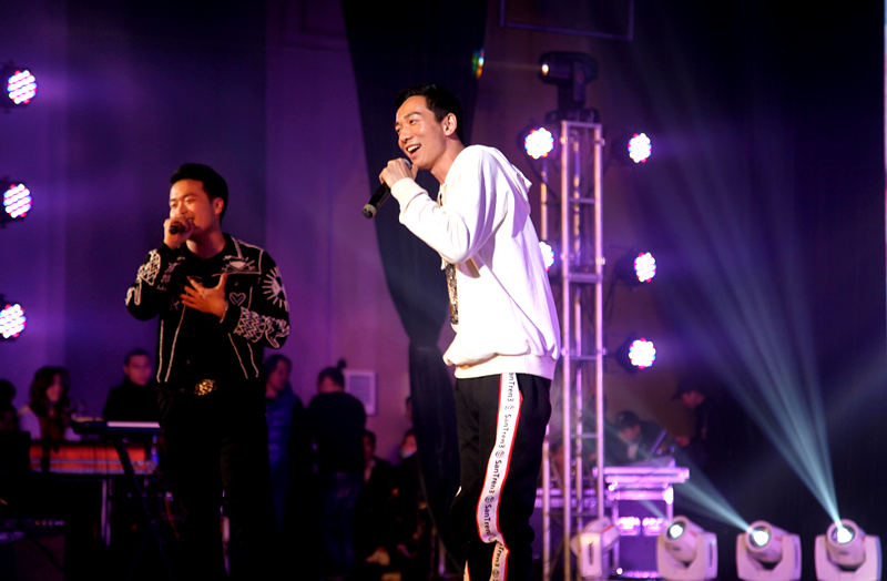 大陆知名音乐人韦小天(右)与歌手林洪辉(左)同台演艺