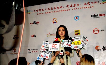 媒体现场采访联合国亲善大使、香港著名歌手张羽希