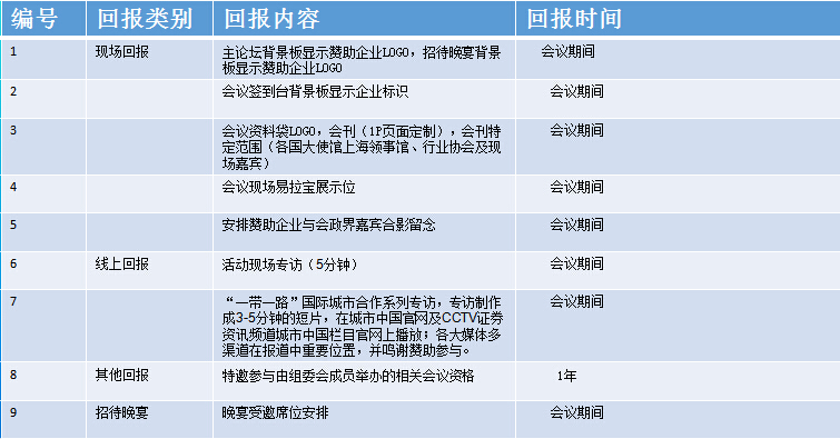 该项活动的首场活动,即“一带一路国际合作项目落地行启动仪式暨国际合作城市高峰论坛”,拟选择在我国深圳市举办。论坛主要项目包括: