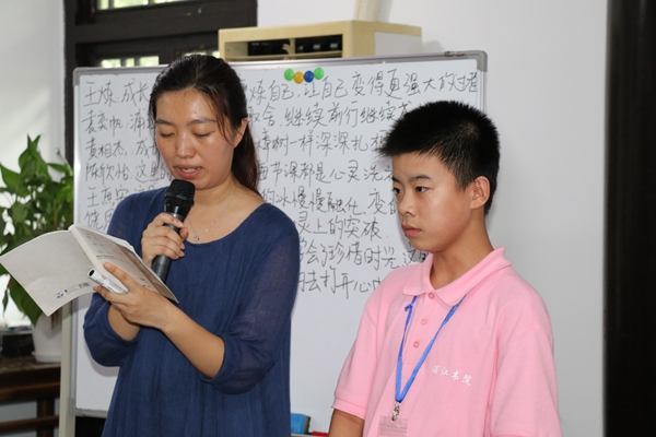 一名家长即兴发言:“真的是没有教不好的孩子,只有不得法的引导!孩子在浦江书院九天的转变,是我们想尽了多少办法都难以达到的!王院长,感谢您的国学夏令营,让我赢回了一个全新的好孩子!”