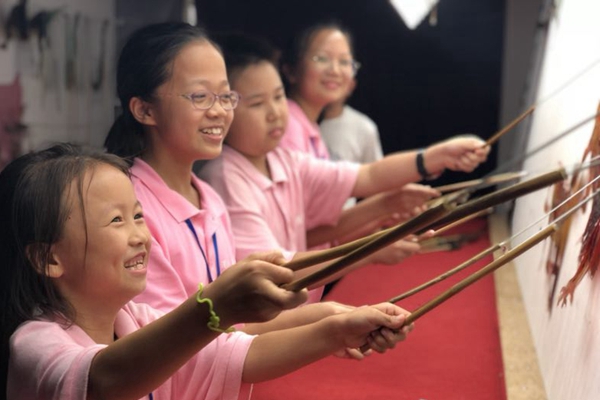在上海世界非遗文化城中的原野根雕红木博物馆,华桂学子见识了各种各样的奇石和根雕,那是一场艺术与审美的盛宴。在青铜器馆,孩子们上了一堂生动的历史课。在皮影馆,孩子们第一次观看了高水平的皮影戏,还到后台亲自操作了皮影,开心极了。